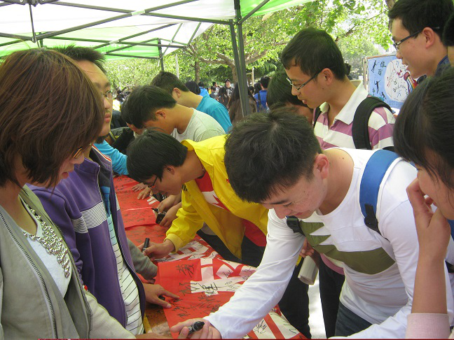 2013年4月17日,由机电院分团委、学生会负责组织,学院各团支部配合进行的“我的中国梦”主题教育签名活动在校旧图书馆前举行。以“相信梦想,相信奇迹,相信中国梦”为主题的签名横幅上布满了广大青年学生相信梦想的笔迹。签名过程中,学生积极踊跃参加。