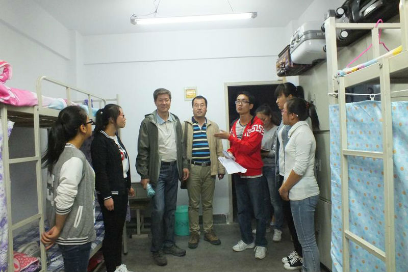 为了落实学校相关会议精神,体现学院人文关怀理念,我院于2015年9月9日晚上由学院党总支书记崔兆庚、院长牛永江、副书记崔德旺、副院长罗海玉带队,组织辅导员、班主任和学生干部分两组深入到知行、双馨、博文等我院学生公寓对2015级新生进行宿舍慰问,同时对学生宿舍进行了检查。