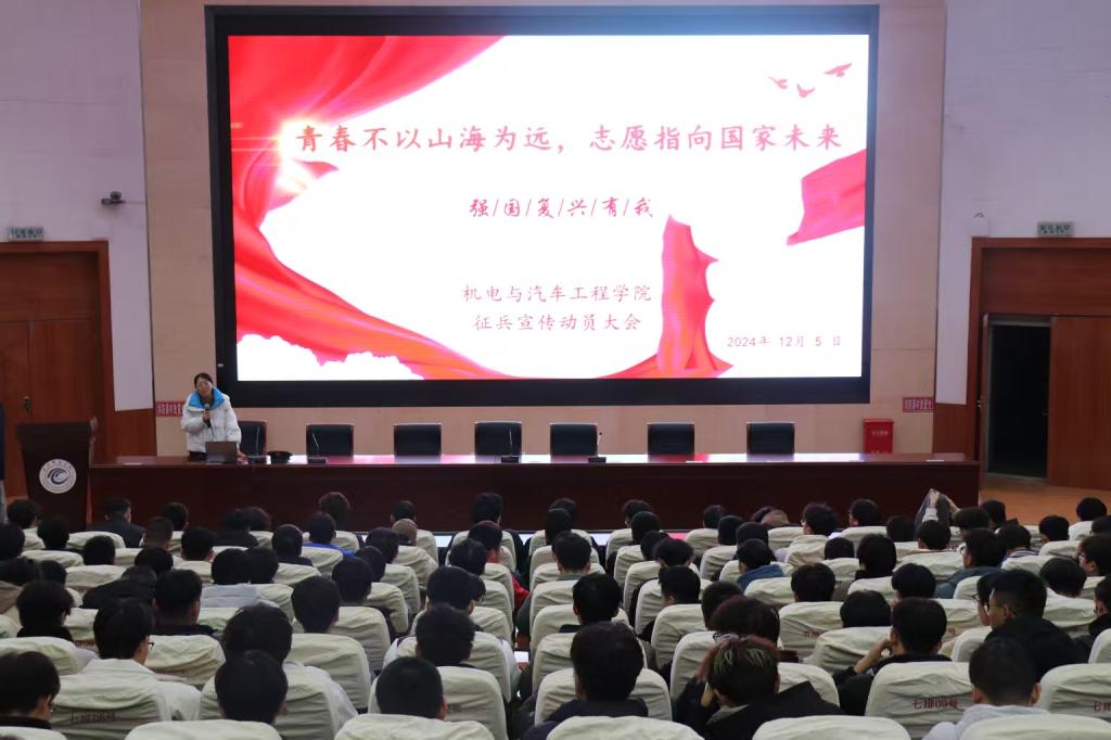 为深入贯彻习近平强军思想,进一步落实国家征兵工作要求,宣传征兵政策,增强大学生国防意识,激发大学生参军热情,为军队征集更多高素质青年,及彰显我院学子积极进取的精神,德赢·vwin体育于12月5日在二号报告厅举行了征兵宣传动员大会。动员会由辅导员主持,学院党委副书记及百余适龄大学生参加。