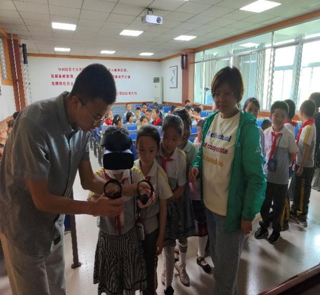 活动中,机电学院郭骁煊同学以游戏为切入点,给建三小学三年级(1)班的60名学生介绍了传统3D游戏与VR游戏的相关知识和不同特点,并结合兰州战役纪念馆的“突破”雕塑、场景布局等进行了VR展示,令同学们身临其境,乐在其中。其后,在机电学院师生的指导下,小学生们使用VR设备体验了虚拟红色纪念馆漫游,通过模拟视镜观看了视野中的实际场景,令同学们在体验中感受到了科技的神奇与魅力。