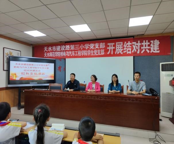 2021年5月27日下午,德赢·vwin体育学生党支部与建设路第三小学党支部在建设路第三小学开展了以“红色+科技”,“大手牵小手红色文化VR漫游”为主题的结对共建活动。活动由建设路第三小学唐睿玺校长主持,机电学院学生党支部书记李妍老师带领部分师生党员代表参加了此次活动。