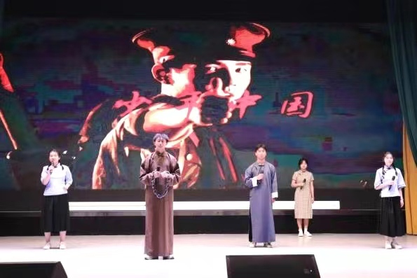 在观众还沉浸于开场舞的表演中时,《青春有你》的朗诵者们伴随着高昂的背景音乐为观众带来极富磁性,深情款款的朗诵,让人陶醉其中,伴随其中的有演唱者余音袅袅的歌声,为我们演绎着青春的活力;《祖国啊,我为你自豪》高亢奋进,饱含深情,令全场沸腾悠扬,让观众们如痴如醉;管迪同学带来的秦腔《洪湖赤卫队》令人眼前一亮,余音绕梁,给我们展现了中国戏曲的魅力,展现了团结一心,不畏艰难险阻、英勇奋斗的民族精神;车子骞等12位同学带来的《我们都是追梦人》歌声悠扬动听,使人回味无穷,舞姿轻盈,飘逸优美;李娜等31位同学带来的《何为青年,青年何为》情景剧绘声绘色,让观众身临其境。最后,伴随着我院学生会成员带来慷慨激昂的《青春》的结束,此次歌颂比赛悄然落下帷幕。