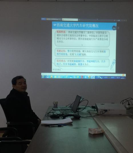 随后,在西南交通大学犀浦校区三楼会议厅,召开了经验交流会,双方就合作模式、合作机制、合作前景等问题进行了深入而友好的交谈。会上,胡广地教授表示非常荣幸能够成为我校特聘教授,对我校尤其我院在过去所取得的办学成绩充分肯定,对我院看准时机,准备进行新能源汽车及智能汽车方面的研究战略表示赞同,并对我院汽车服务工程专业的办学方向和学科建设提出了宝贵建议。双方还就新能源汽车研究方向的合作模式开展了充分的讨论,达成了初步的合作共识,胡广地教授对双方的合作充满信心。