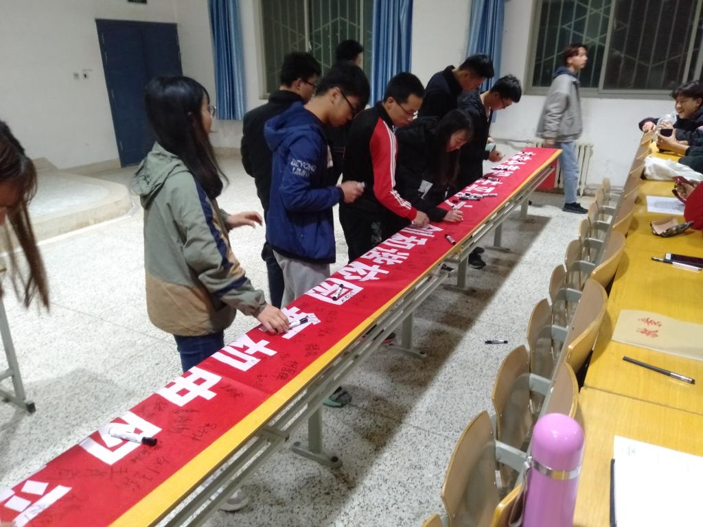 最后,辅导员组织学生在“立安全意识、走平安之路、创和谐校园、展机电风采”横幅上签字,让学生把安全意识自觉地内化为自身的行动。