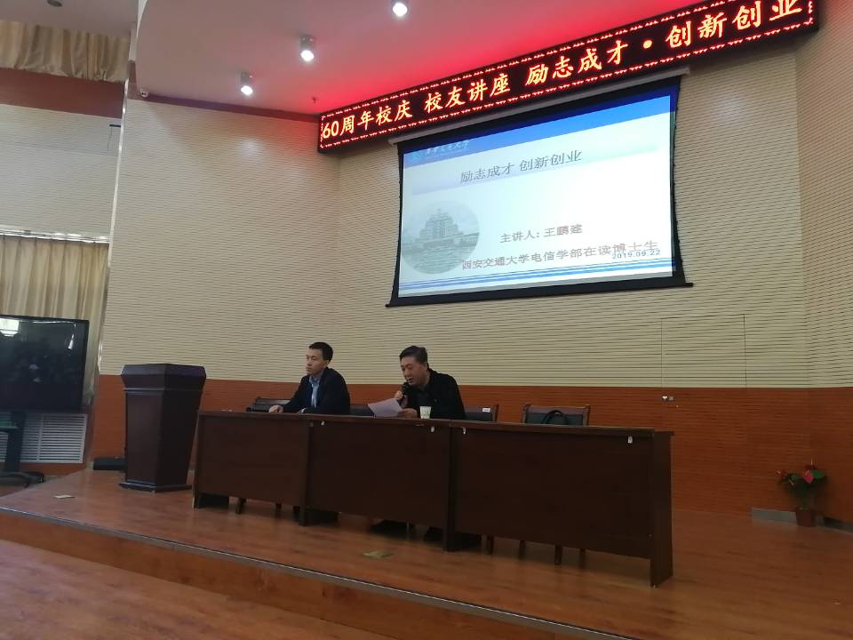 正值我校60华诞之际,为进一步做好在校学生的思想教育工作,引导广大学生学有所用、学有所长,志存高远,更好把握无悔的明天。德赢·vwin体育邀请我校杰出校友、西安交通大学电信学院博士生王鹏建于2019年9月22日上午9点在三号报告厅做了精彩的励志报告,分享了他十几年来的奋斗经历和工作学习中的经验。本次报告会由德赢·vwin体育党总支副书记范学智主持,全院师生近300人参加。