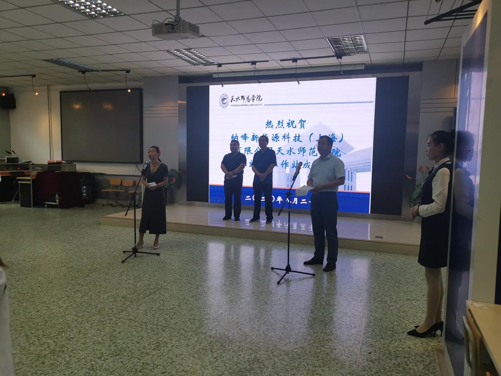 2020年8月28日上午,学院在就业大厅隆重举行“上海纳峰新能源科技有限公司天水师范学院就业工作站”挂牌仪式,学校党委常委、副校长安建平,纳峰新能源科技(上海)有限公司人力资源总监王艳女士出席。