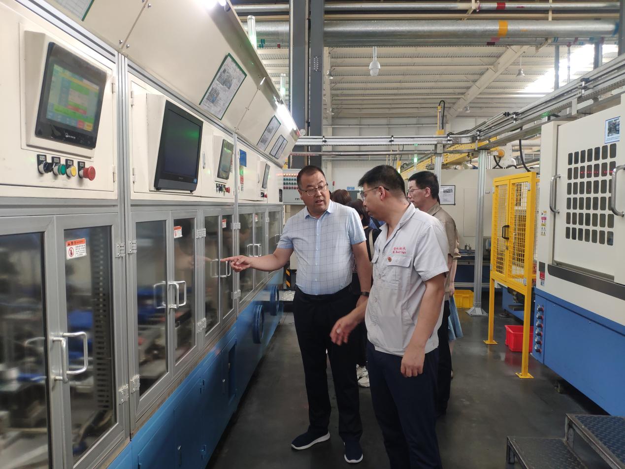 首先,在公司副总经理包广利的陪同下,罗海玉一行参观了公司产品陈列室及四大分厂。包广利就产品生产加工过程,新型数控生产线、信息化系统运用等情况进行了详细介绍。