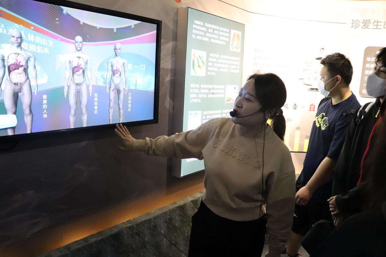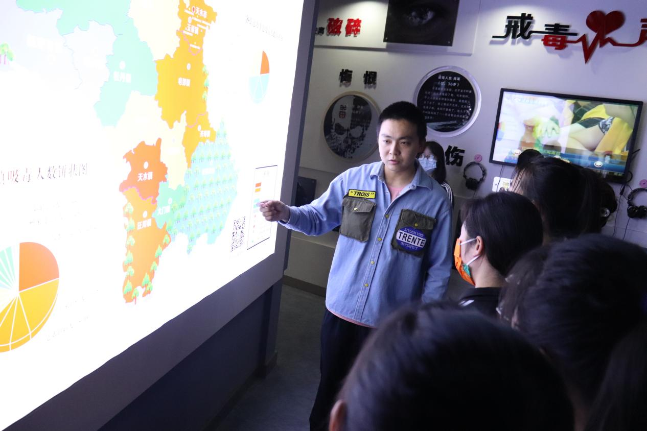 在现场,基地工作人员为同学们进行了科技展示,其中包括“AR毒驾模拟器”、“吸毒前后照片生成器”等程序,带领同学们更深、更近的体会到毒品给人类带来的危害。此外,基地工作人员还通过模型展示和视频材料,向同学们讲述了一个吸毒人员的一生。