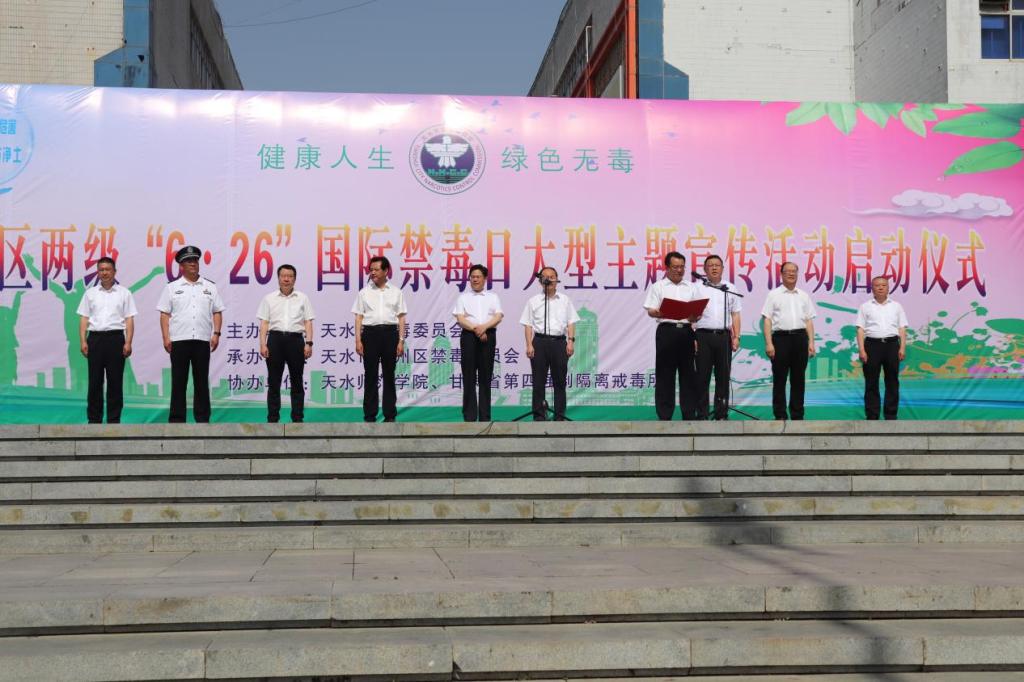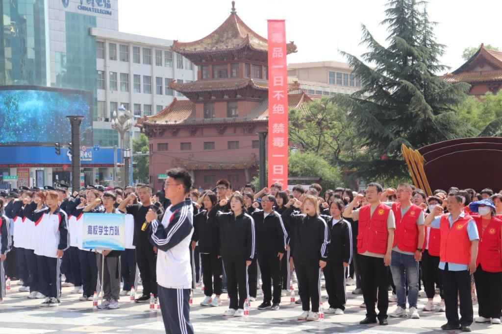 德赢vwinac米兰官网登录被邀请参加了天水市区举办的“健康人生 绿色无毒”——2023年“6•26”国际禁毒日大型宣传活动。作为高校学生代表方队的一员,他们与天水市、区禁毒办工作人员、社区居民方队、公安民警方队等共计300余人一同参加了活动。