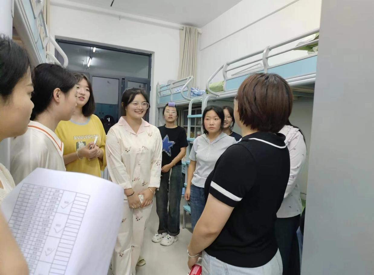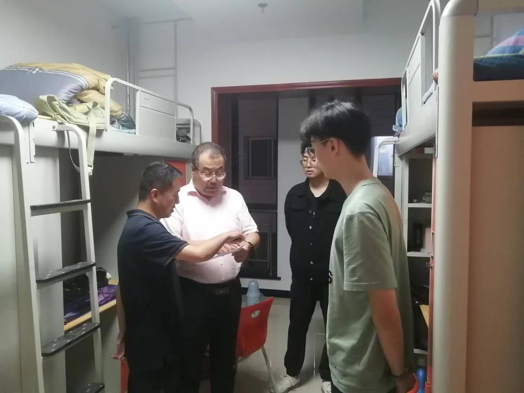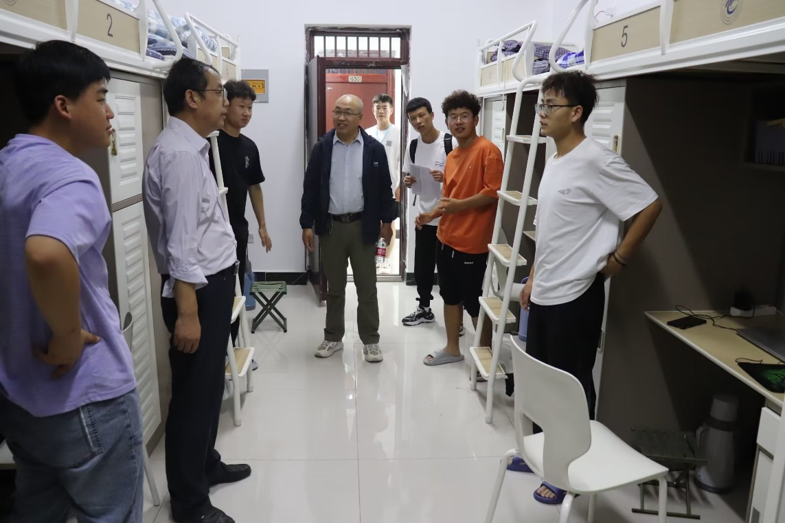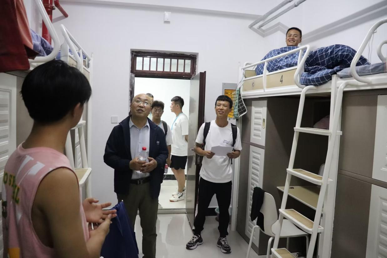在走访宿舍过程中,院领导与学生们亲切交谈,详细询问在校的生活安排、来校后的感受等,了解学生在新宿舍的住宿和适应情况,提醒学生们不能因为进入大学而放松对学习的懈怠,依旧要好好学习,加强体育锻炼,养成良好生活习惯和学习习惯,保持积极乐观的心态,鼓励学生要逐步提高独立自主的能力。