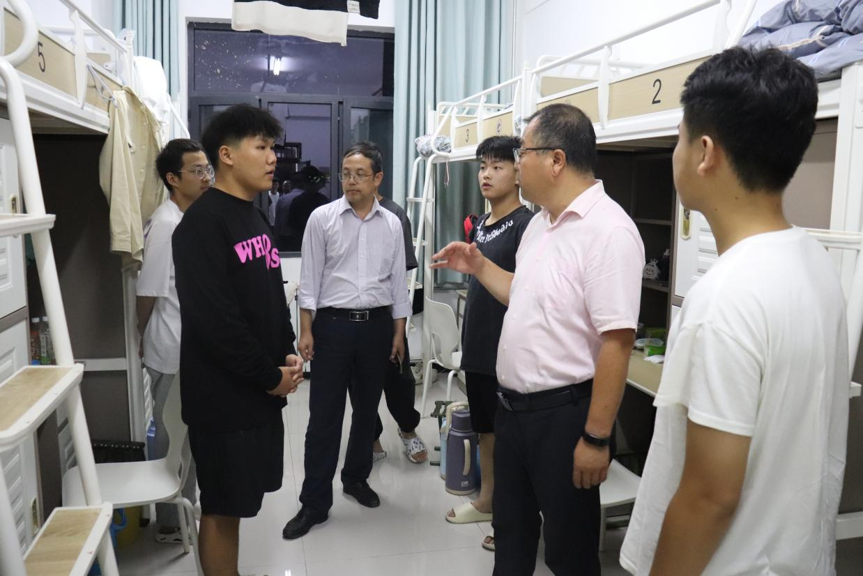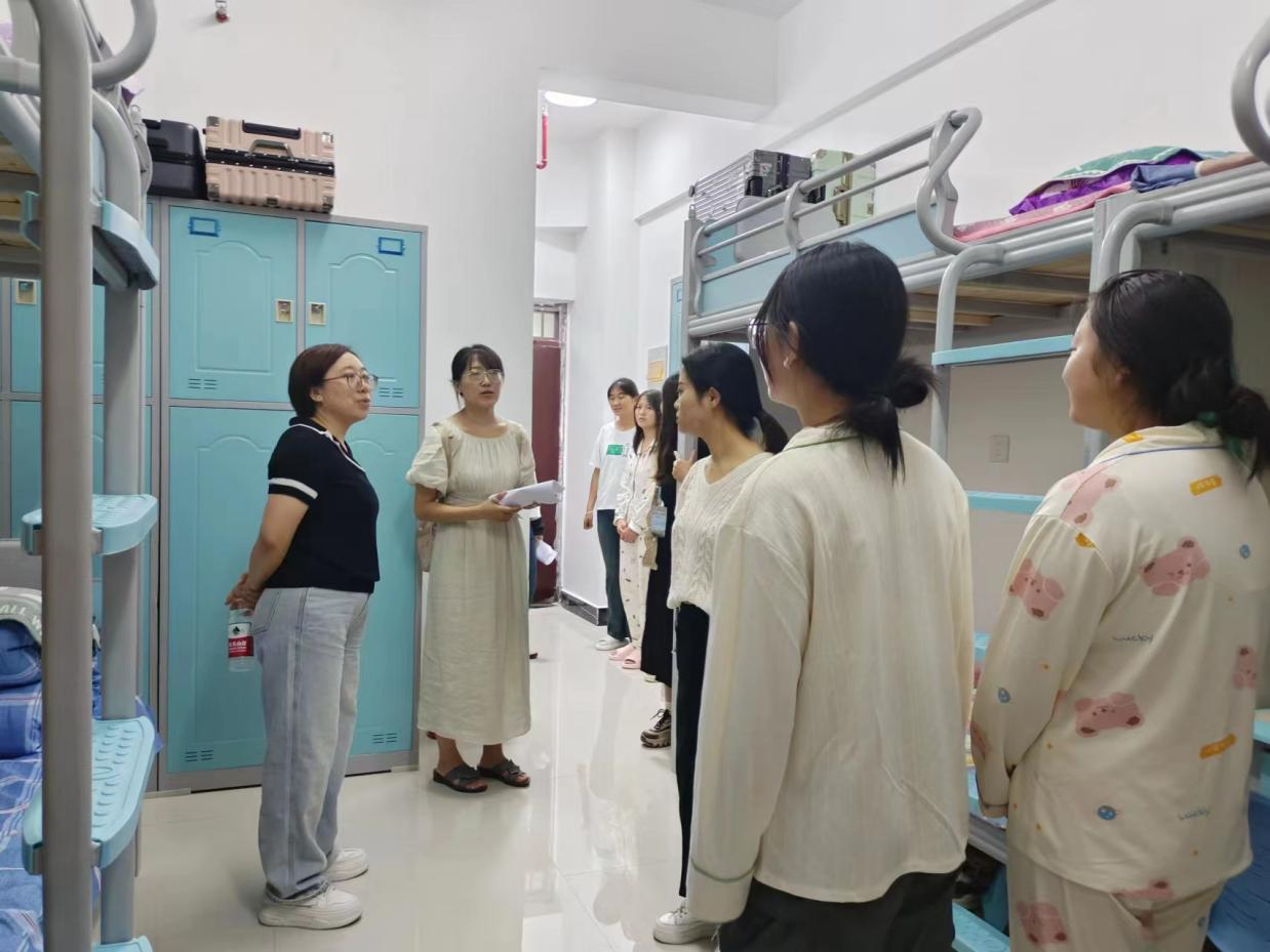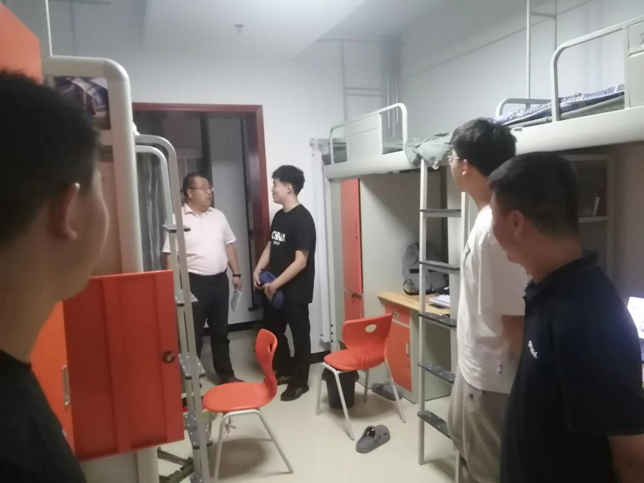 在走访宿舍过程中,院领导与学生们亲切交谈,详细询问在校的生活安排、来校后的感受等,了解学生在新宿舍的住宿和适应情况,提醒学生们不能因为进入大学而放松对学习的懈怠,依旧要好好学习,加强体育锻炼,养成良好生活习惯和学习习惯,保持积极乐观的心态,鼓励学生要逐步提高独立自主的能力。