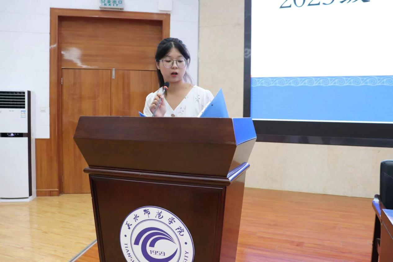 大会第二阶段中,辅导员杨青老师为新生们解读了学籍管理、违章违纪规章制度及学位获得条件,并嘱托新同学们在校的目的是为了成长,并在成长中学习,在校要遵规守纪;辅导员张丽改老师为大家解读困难学生的认定、奖助评优以及征兵政策,辅导员张生海老师对安全教育、电信诈骗以及心理健康等工作进行培训。