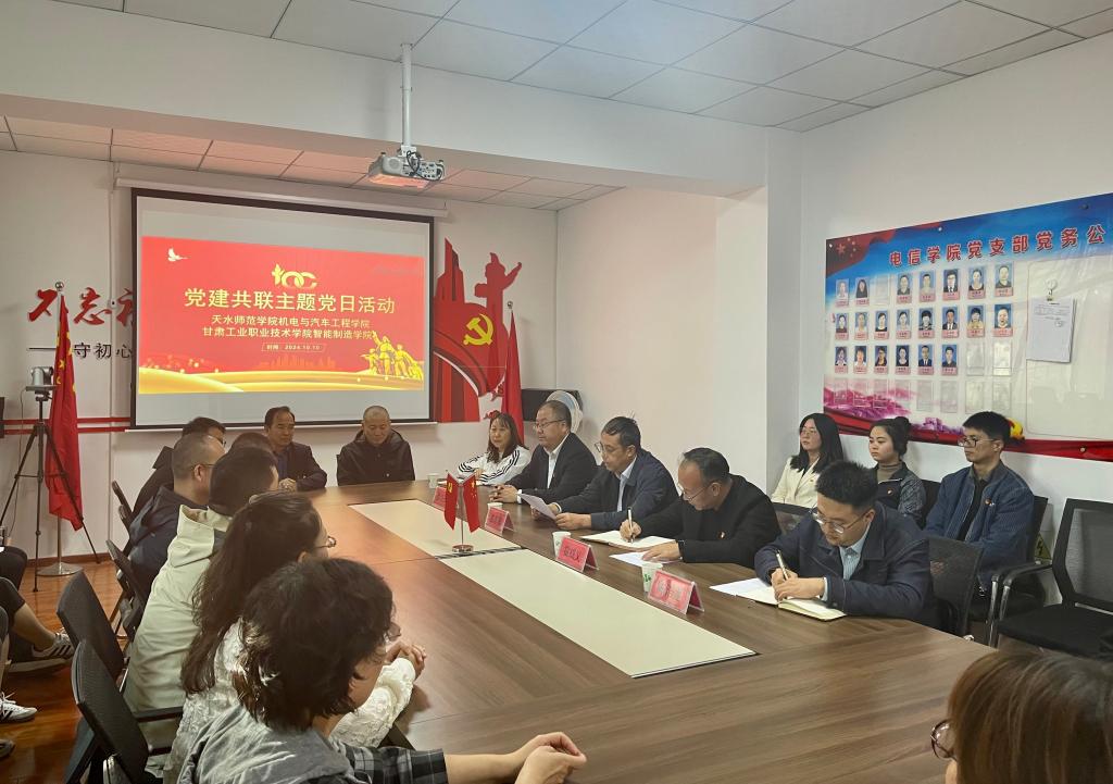 全体党员一起认真学习了习近平总书记视察甘肃重要讲话重要指示精神。两院院长分别介绍了各自学院的办学历史、办学特色,分享了在党的建设、政治学习、人才培养、产教融合等方面的经验和做法。