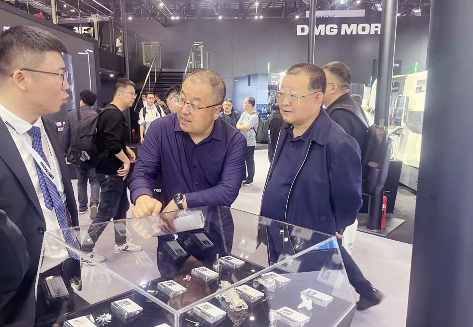 王旭林一行先后参观了星火机床、秦川机床、通用技术集团、科德数控、松德刀具等国内领军制造企业展区以及德马吉森精机、山崎马扎克、发那科、西门子等国际巨头制造企业展区,详细了解了相关高端制造装备及其技术的发展应用动态,并就高端装备制造方面的技术创新与人才培养等方面和相关企业负责人或技术专家进行了探讨与交流。