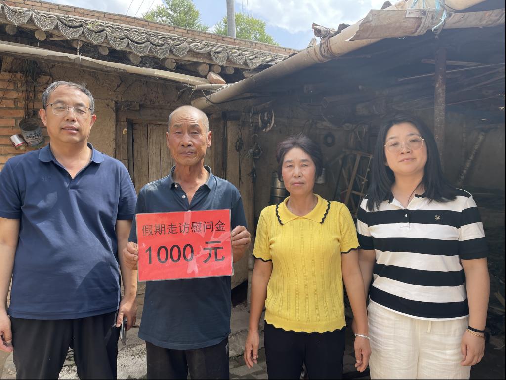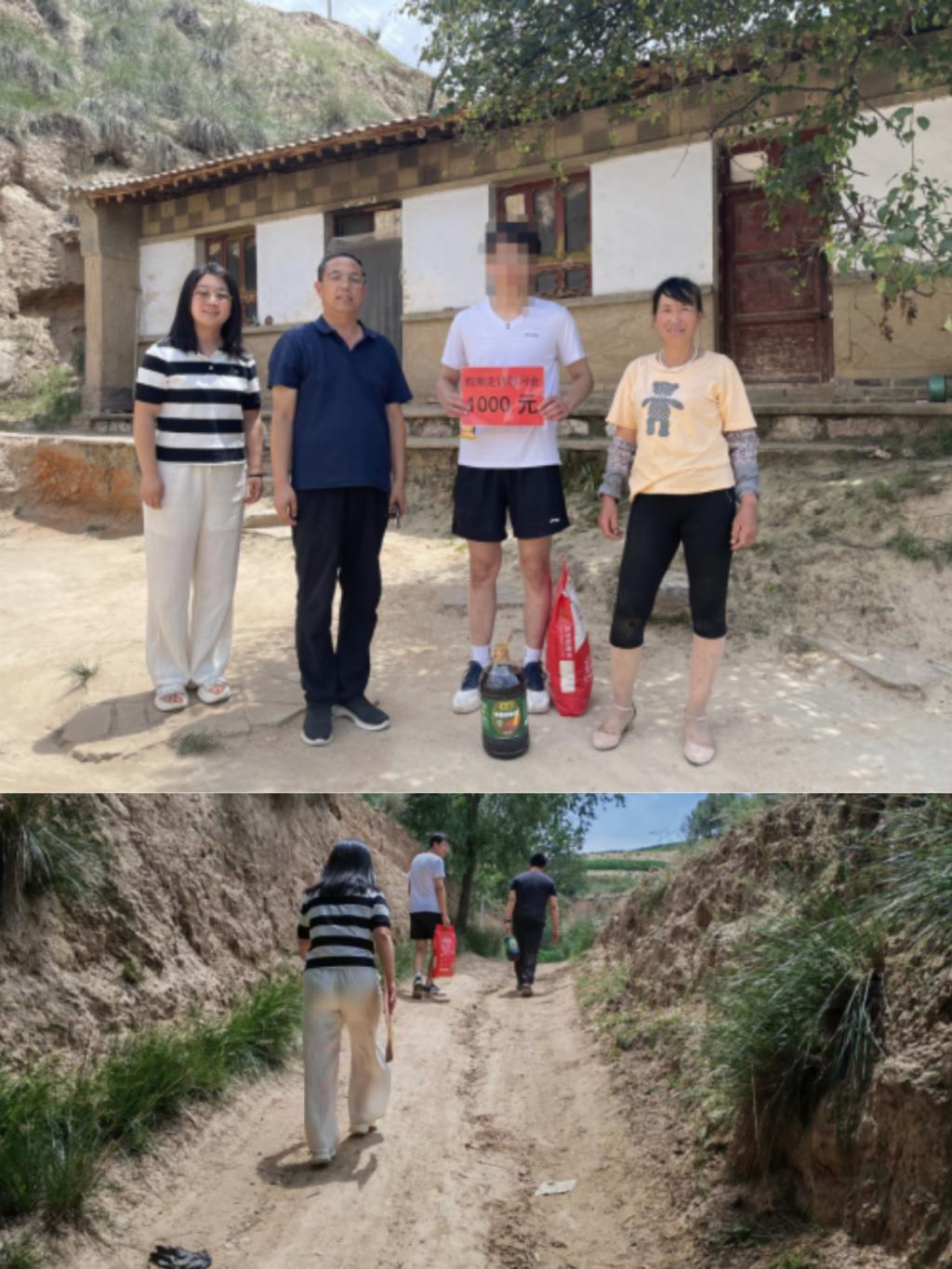 渭源县大安乡武家山村地处大山深处,土地贫瘠,交通及其困难,生活环境非常艰苦,学生家长动容地说到:“放了假,老师和学校还惦记着孩子,大热的天,山路遥远,你们能来,太暖心了!”。温志贤还向学生家庭介绍了学校的奖助学金、勤工助学、助学贷款等帮扶政策,明确告知各项政策的申请流程和保障措施,让家长和学生对未来的学习生活吃下“定心丸”。同时,学院为每户家庭送上了慰问金、大米和食用油等慰问品,将温暖实实在在送到学生和家长的心坎上。