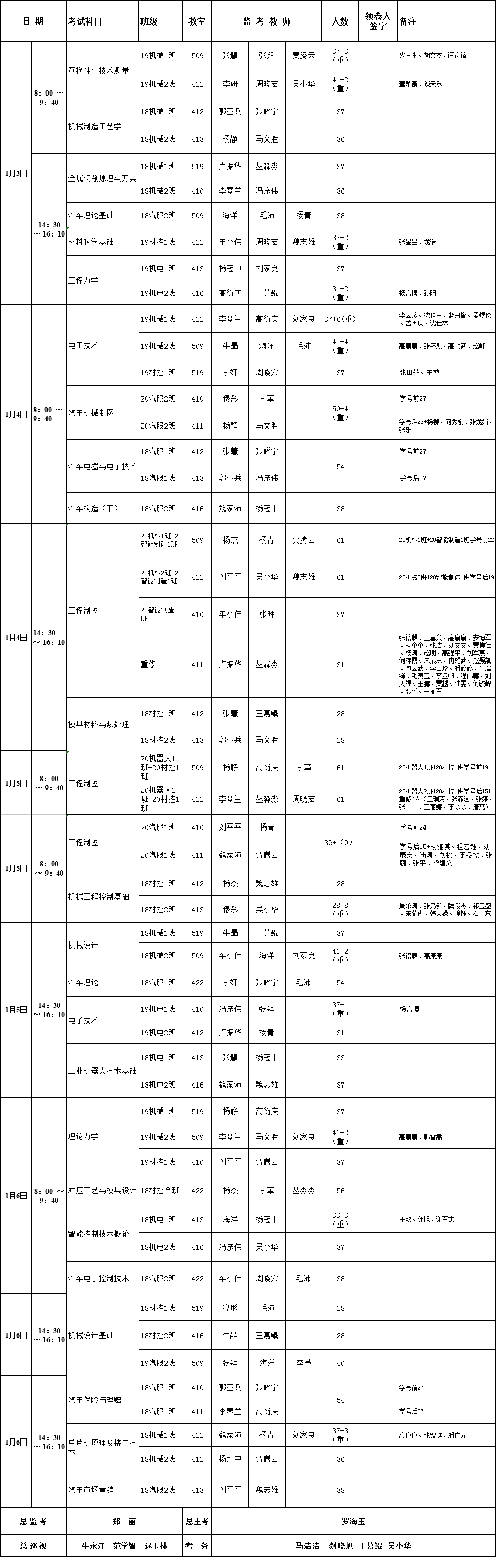 注:1、监考教师必须提前15分钟在机电学院办公室点名领取试卷、监考牌并签名;