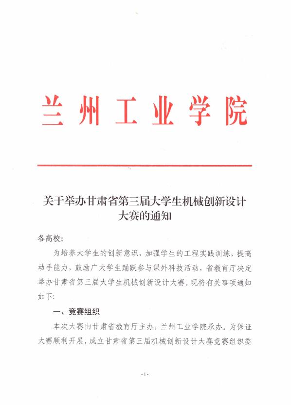 关于举办甘肃省第三届大学生机械创新设计大赛的通知